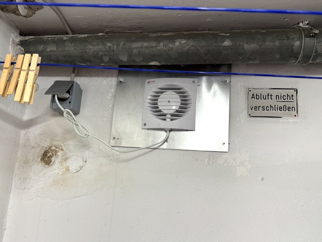 Zweiter Schritt: Ein Badlüfter, bekannt aus gefangenen Waschräumen, umgangssprachlich