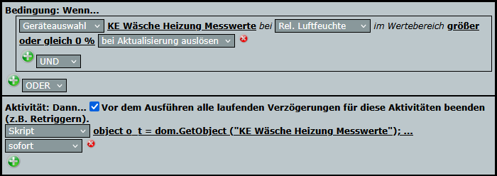 Die zusätzliche Bedingung Heizung Brenner bezieht sich auf den Aktor, der