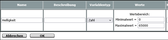 Die Variable Helligkeit ist einfach eine Zahl, die den geglätteten Helligkeitswert des Kombisensors aufnehmen wird.