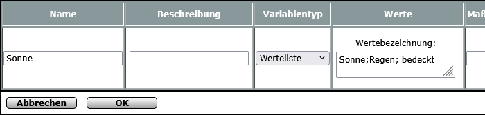 Ich nenne sie diesmal nur Sonne. Es handelt sich um eine Werteliste mit den Werten Sonne, Regen und bedeckt. Ich weiß, die Überraschung ist nach der Überschrift irgendwie weg.