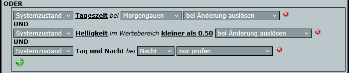 Zeit für die träge Helligkeit: Im Morgengrauen – also in der Stunde vor dem Tagesbeginn nach Astrozeit der CCU – verbleibt Tag und Nacht auf Nacht, solange Helligkeit nicht 0,5 oder höher ist. Die zusätzliche Bedingung für Tag und Nacht sorgt dafür, dass Tag und Nacht im Morgengrauen nicht wieder auf Nacht zurückspringt, falls ein paar Wolken aufziehen und es wieder dunkler wird.