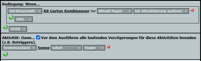 Im ersten Teil wird geprüft, ob der Kombiseonsor gerade Regen meldet. Wenn ja, dann wird auch die Systemvariable auf Regen gesetzt.