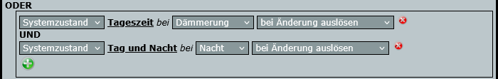 Schließlich und endlich wird die Systemvariable gesetzt – Nacht, wenn eine der Bedingungen zutrifft, ansonsten Tag.