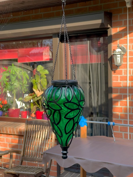 Immerhin die Hängeleuchte hat es danach ins neue Haus geschafft, allerdings – wie alle Solarleuchten – mangels Haltbarkeit nicht sehr viel weiter.