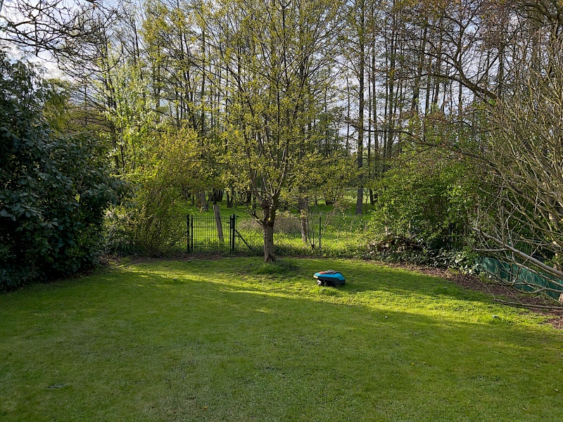Ein letzter Blick auf das Betätigungsfeld des Roboters. Der hat beim neuen Haus deutlich mehr Auslauf – als erstes war ein neuer Akku notwendig, weil er mit dem alten nicht mal sein tägliches Pensum geschafft hat.