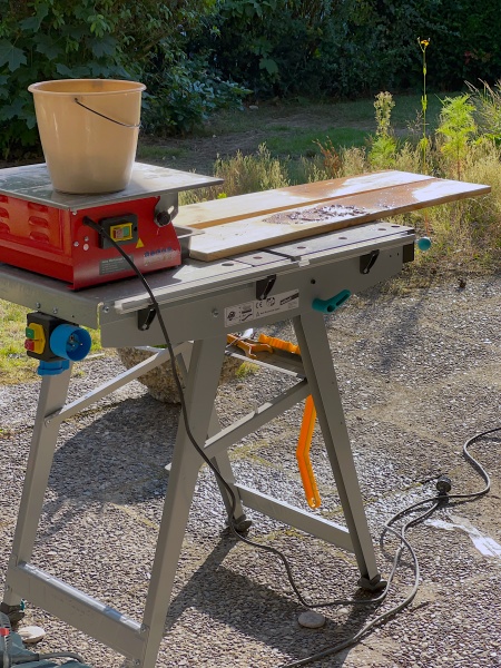 Die Bearbeitung von Feinsteinszeug hatte ich mir angenehmer vorgestellt. Löcher für Steckdosen haben ewig gebraucht und Fliesenschneider war schon eine ziemliche Sauerei.