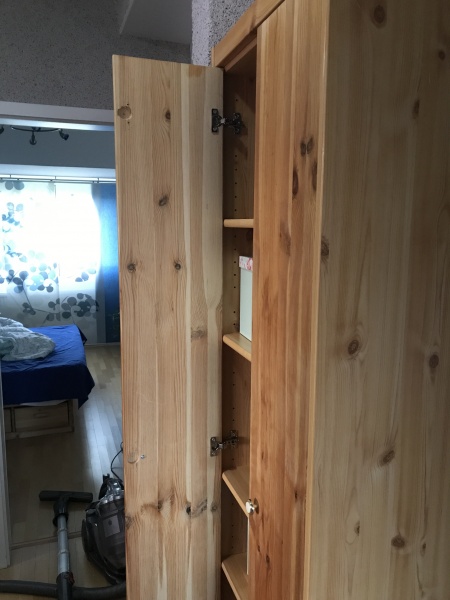 Mit zwei Massivholz-Brettern und ein paar Topfscharnieren kann man aus einem einfachen Billig-Regal einen ansehnlichen Schrank machen.