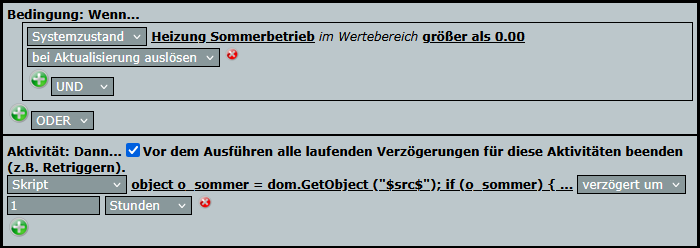 Der einfachste Anwendungsfall ist natürlich die Identifizierung des Sommerbetriebs: Wenn Heizung Sommerbetrieb größer als 0 ist, bleibt der Brenner aus.